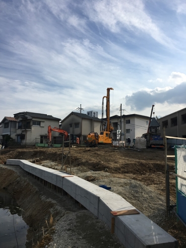 昨年末までには、現場樹木の抜根・伐採を終え、いよいよ建築に向け本格稼働しだしました。現在は、地盤の改良に着手しており、今年一番の寒波到来の中、職人さん達が作業を進めております。